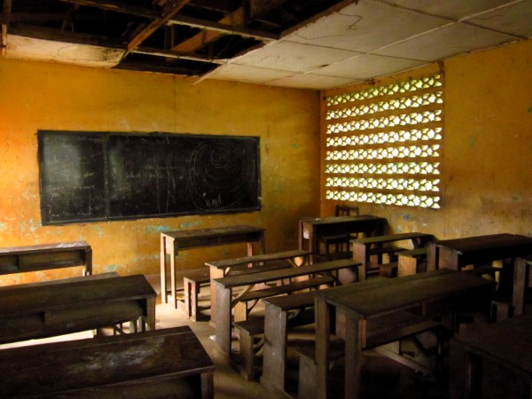 The 9th grade classroom. Yes, the hole in the ceiling leaks when it rains.