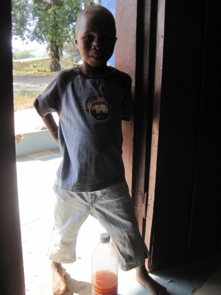 Daniel… wearing pants! He poked his head in shyly and asked if I wanted to drink juice with him.