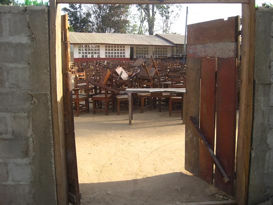 We went back to school today.  I had a bad feeling as I walked to campus, though.  Central High students usually fill the streets as they converge on campus, but I saw no one in their maroon or green until three kids on a motorbike passed me just minutes from school.  “Nice day for a walk,” I thought as I watched a few kids come out of the gate and walk back toward town.  Approaching the gate I just started laughing.  The entire courtyard was full of desks, haphazardly thrown from the classrooms.  About a dozen students milled around the edges.  Oh, this was going to be good.