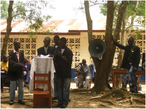 Romeo, outgoing president, makes a speech.