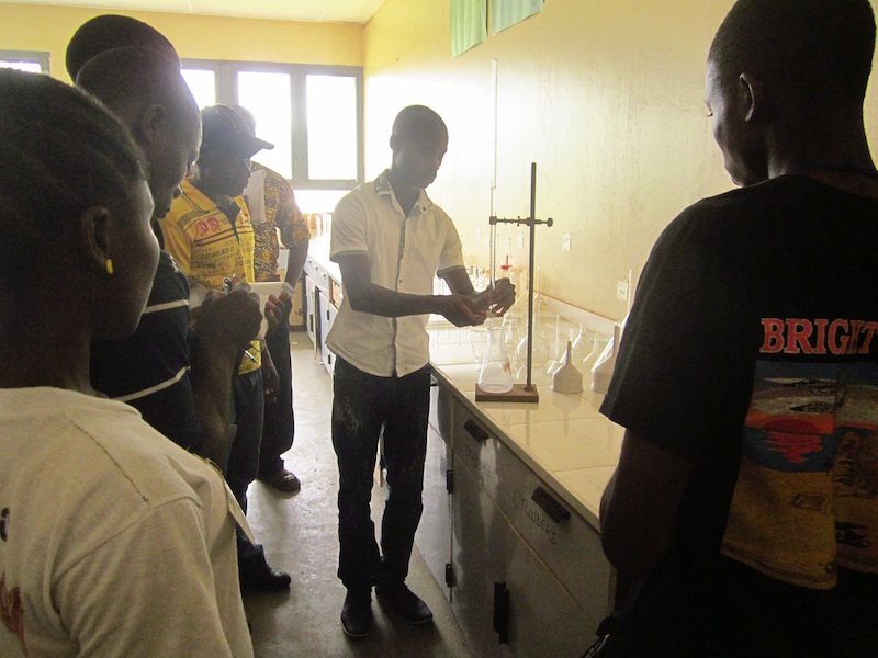 » The chair of the chemistry department demontrates a titration.