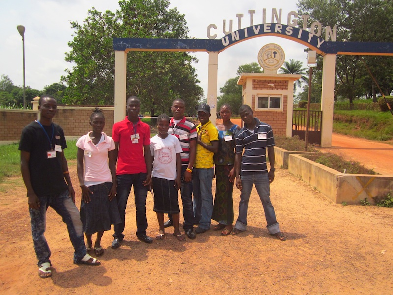 » Future leaders at the Cuttington welcome gate in Suakoko.