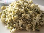 - When the rice has finished boiling add a generous amount of salt and the chopped palava sauce to the hot rice and stir slightly. Return the cover to the pot and let it sit. The steam will finish the rice and also cook the palava sauce.